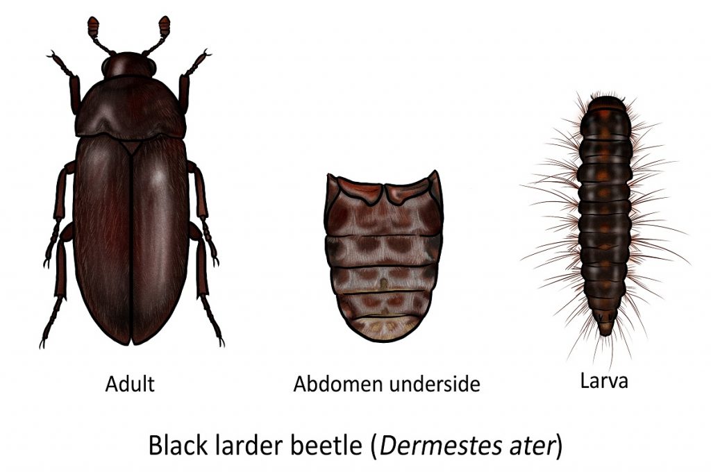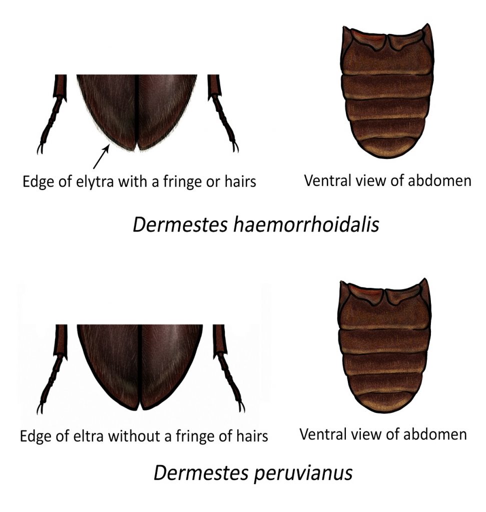 Species: Dermestes ater, Dermestes haemorrhoidalis, Dermestes peruvianus