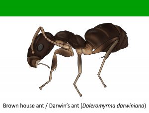 Worker ants are 2-3 mm in length and are monomorphic, meaning they do not have varying sizes. The head is dark brown and the body is a lighter brown. This species looks similar to the Argentine ant.