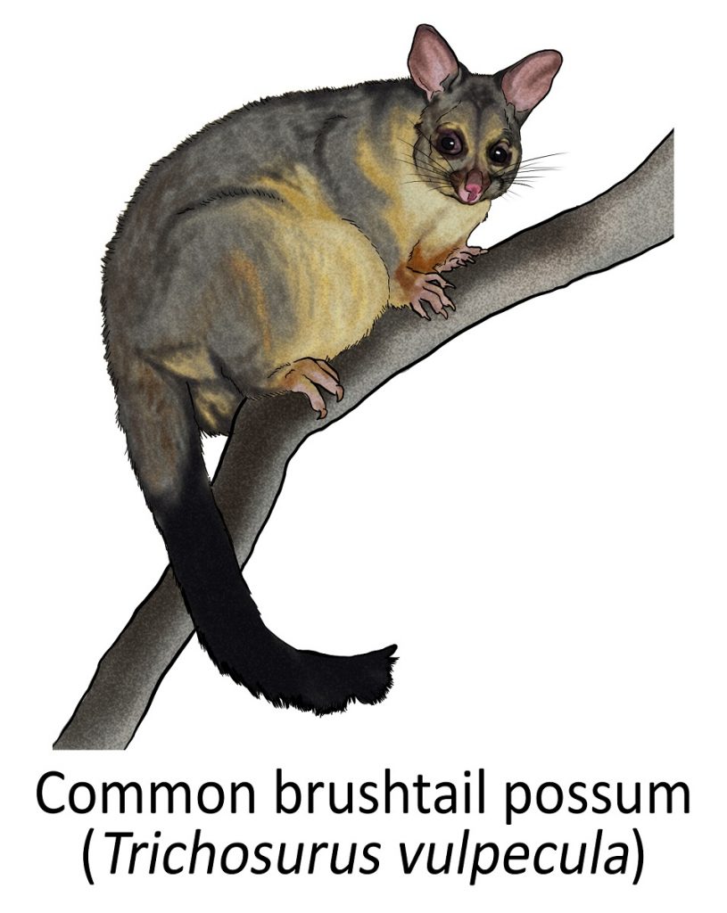 The second largest possum, with a head and body length of 32–58 cm and a tail length of 24–40 cm. They have large pointed ears, grey fur, and a bushy black tail. Males are larger than females. The fur of males is reddish at the shoulders.
