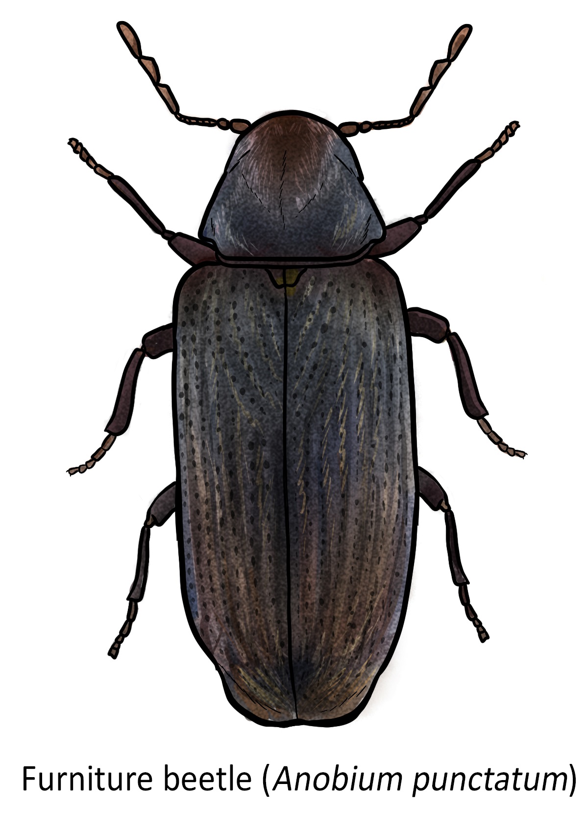 Furniture beetle attacks often go unnoticed until a piece of furniture breaks. Pretreating the timber before use is the best control measure for furniture beetles. Spray application of Permethrin-based treatment can be used on surfaces. This treatment only penetrates 0.5–1.0 mm but will kill beetles as soon as they emerge and have contact with the treated surface.