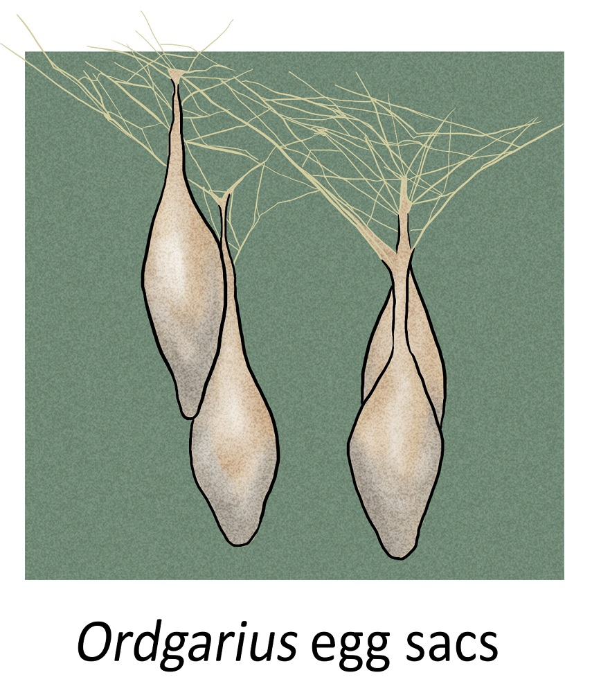 Makes loose webs on leaves, etc. Produces a thread with globule on the end for catching prey.
