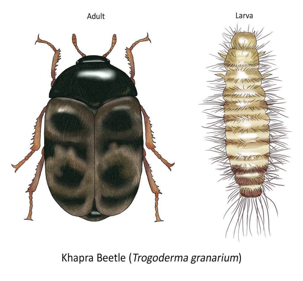 This species has a complete life cycle, comprising egg, larval, pupal, and adult stages. The average life cycle duration of the khapra beetle typically ranges from 30 to 45 days under optimal conditions.
