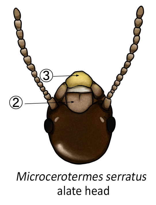Alates. Alates measure 7.50–8.50mm in length with wings; they measure 3.75–5.75mm without wings. They are similar to M. turneri alates in general appearance but are always distinctly smaller and paler in colour.