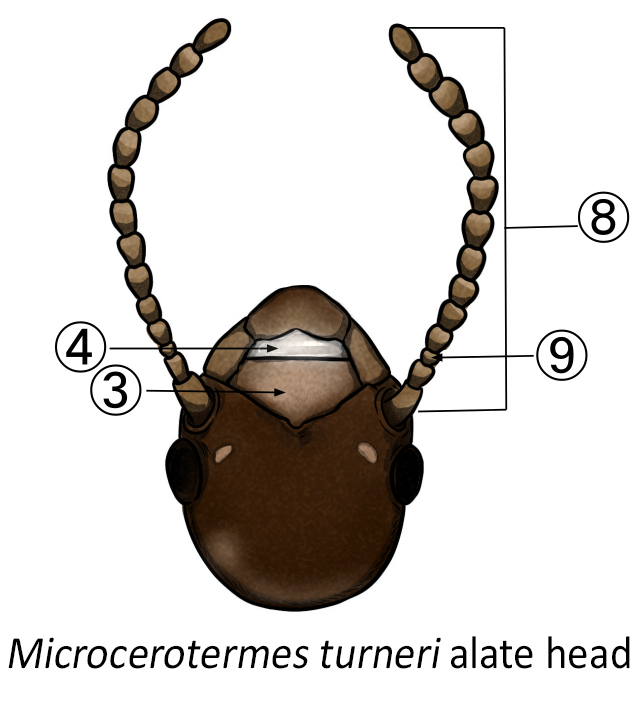 Alates. Alates measure 9.00–10.25mm with wings, and 4.75–5.80mm without wings.