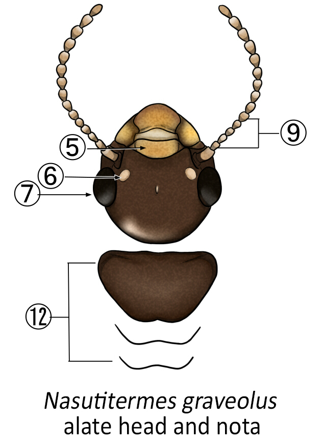 Alates. Alates are rather large, measuring 15.00-15.75 mm with wings, and 7.50–8.00mm without wings
