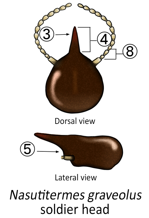 Soldiers. Soldiers are 4.00–4.50 mm in length, a medium size species with short wide heads, and short antennae