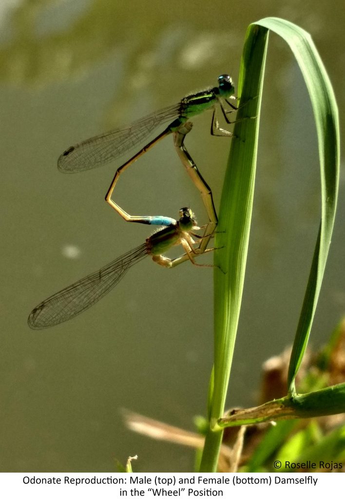 The adults are active during the day and can be seen mostly during spring and summer in temperate regions. They catch on the wings, flying insects such as mosquitoes, flies, and beetles. Dragonflies and damselfies reproduce sexually in an rather odd way. The male uses the claspers at the end of his abdomen to grasp the top of the female’s head or prothorax, forming a tandem. After forming a tandem and the sperm is ready, the female responds with bending up her abdomen to the genitalia of the male and form a heart-shaped position, known as a ‘wheel position’ to receive the sperm. This may occur during flight or at rest. The eggs are inserted into aquatic plants or dispersed on the water. The naiad undergoes a number of moults during development, and after it’s last instar, it crawls away from the water and undergoes a final moult. It unfolds its new wings and flies off as an adult.