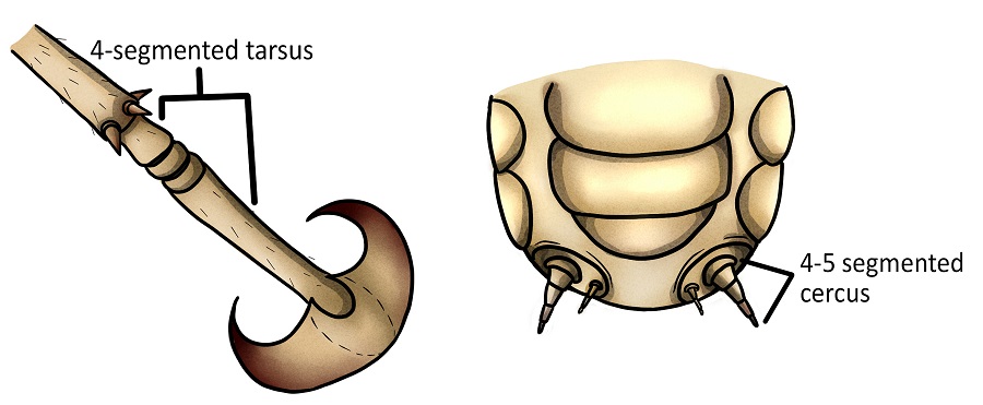 Termopsidae is a family of dampwood termites characterized by having 4 tarsal segments, and cerci with 4-5 segments.