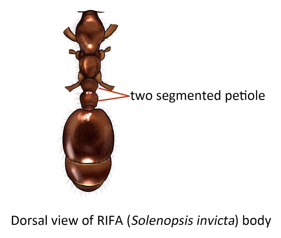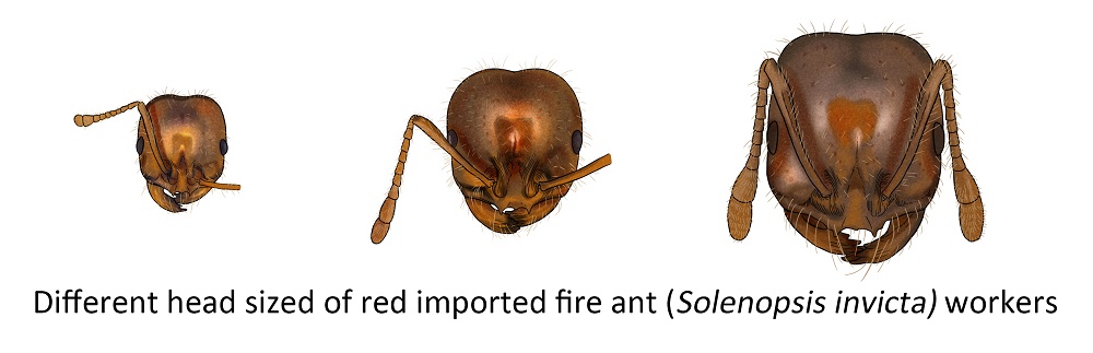 This species has major and minor workers (polymorphic), ranging from 2.4–6.0 mm in length. They have a two-segmented petiole and 10-segmented antennae with 2-segmented clubs. Their mandibles have four distinct teeth. Their bodies are reddish brown, and the gaster is black with a stinger at the tip.