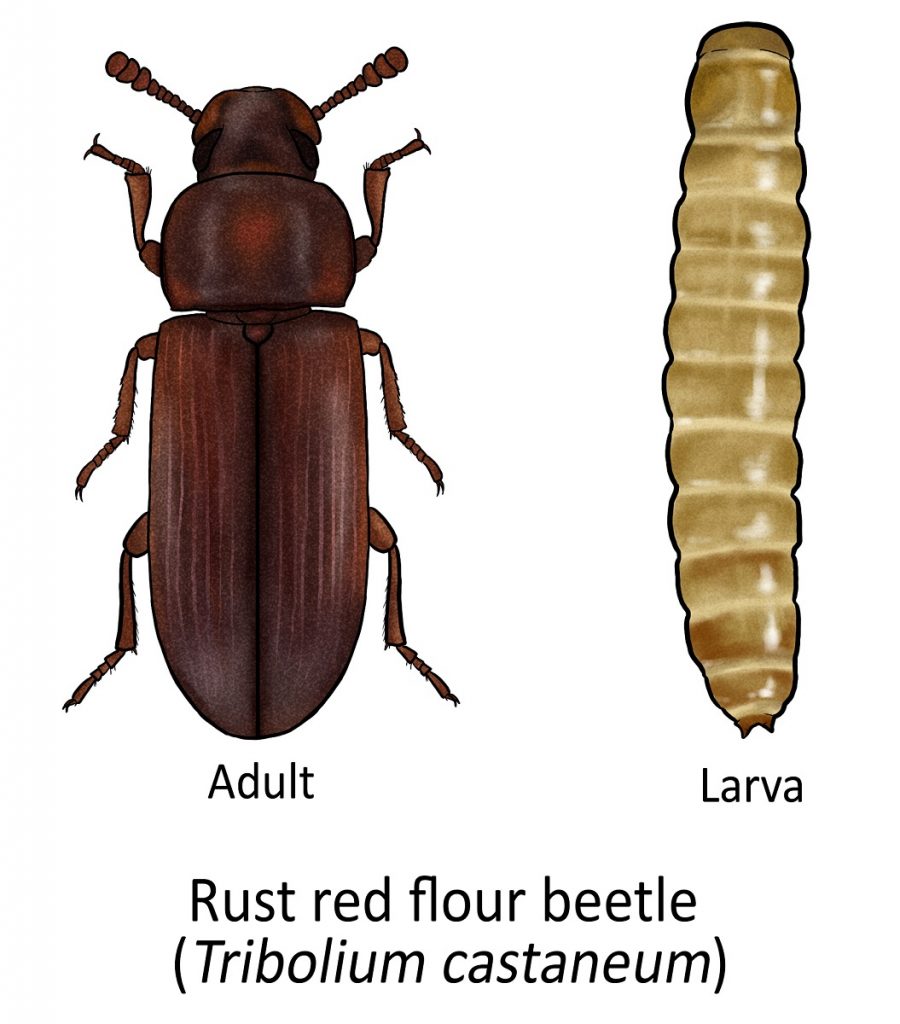 Attacks various dried products of animal and plant origin such as nuts, dried fruit, processed food, powdered raw materials, flour, processed foods, etc.