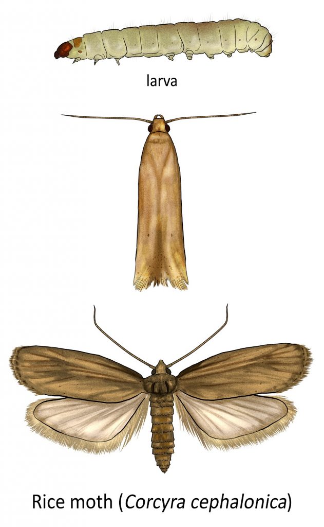 At optimum conditions of 30 ℃ temperature and 75% relative humidity, the life cycle will be completed in 27 days. The eggs are laid loosely in crevices in commodities. Larvae are external feeders and produce silk webbing. Adults are short-lived, fly, and do not feed.