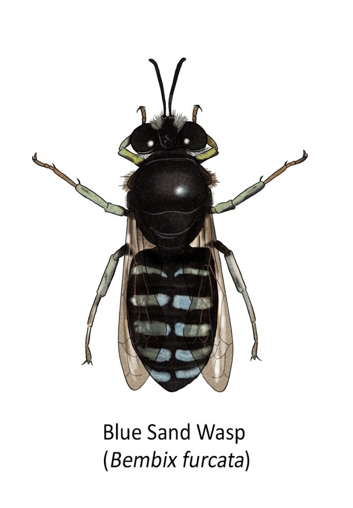 Females construct complex tunnel systems in sandy oil. Individual burrows typically are 15-30 cm deep, where multiple cells branch off the main tunnel. The Females capture flies paralyse them and transport them back to the nest.
