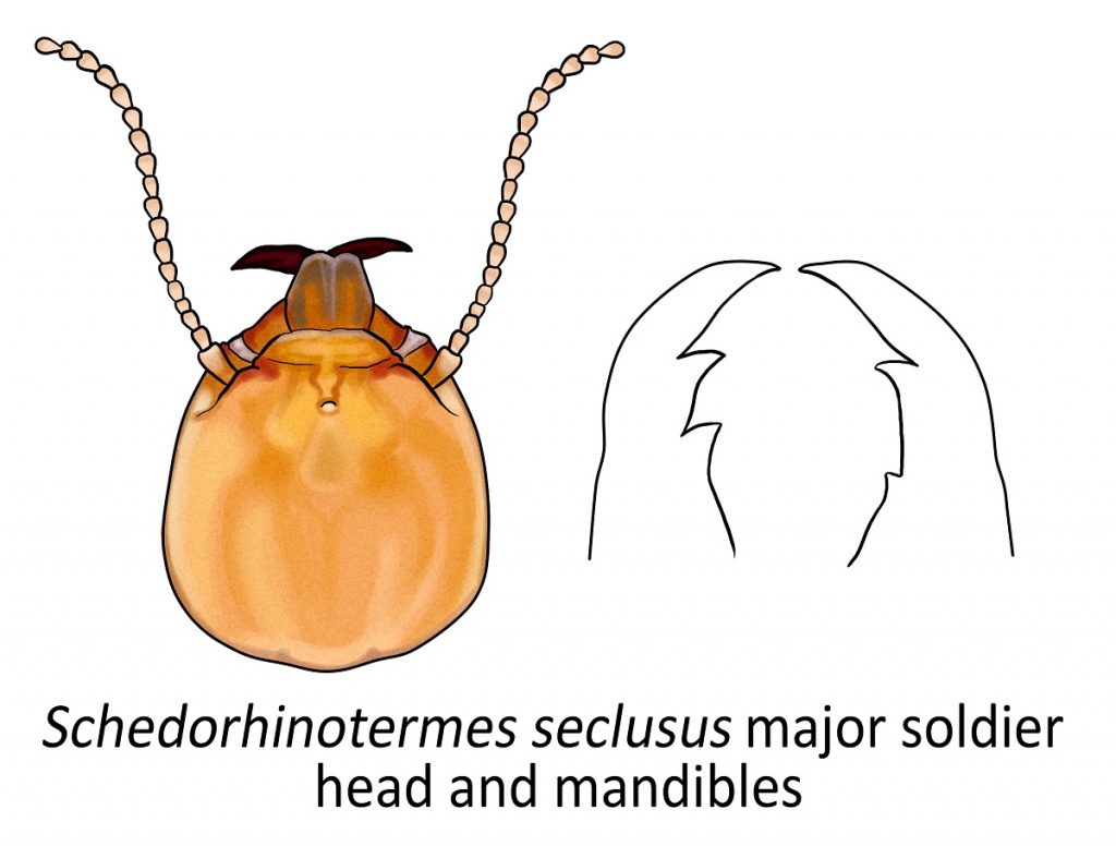 - There are no reliable characteristics to distinguish S. seclusus from minor soldiers of other Schedorhinotermes species.