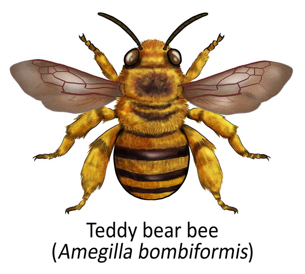 Females make shallow nest burrows in soft soil and sometimes under houses. It is solitary but stays in close proximity to other teddy bear bees.