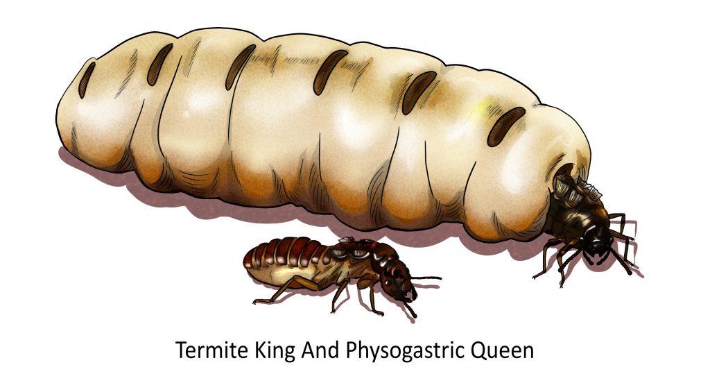 The King. The king’s job is to mate with the queen from time to time and release pheromones that would determine the castes of their offspring. The king may live over 20 years; if he dies, new kings will be selected from supplementary reproductives in the colony.
