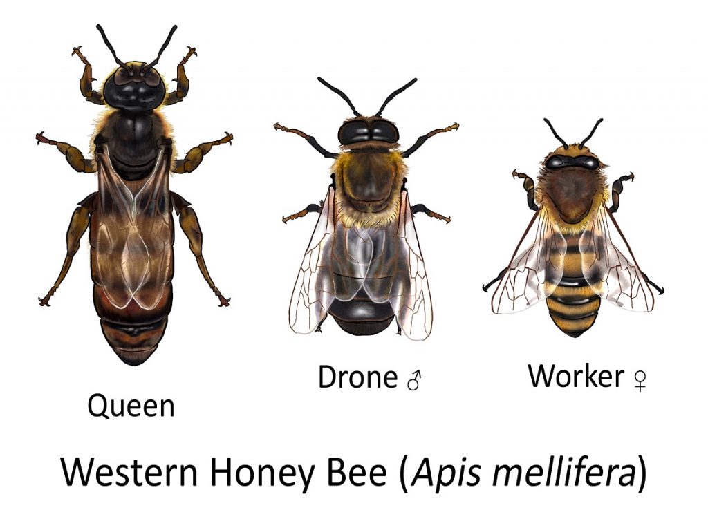 Social bees that live in colonies with a population of approximately 10,000 to 30,000 bees adult worker bees. They build parallel wax structures that house food storage in their hives and their brood nest in the cavities.
