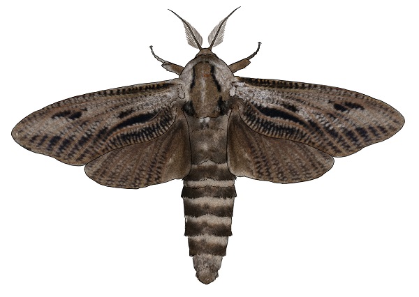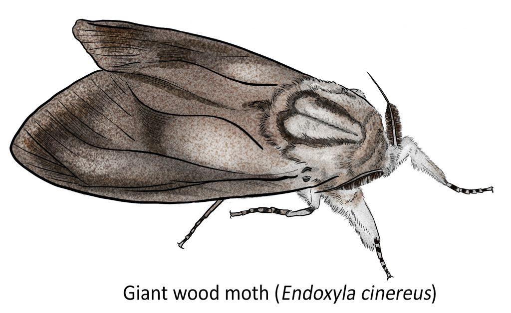 Wood moths are pests of forest trees that are native to Australia. The larval stage of these are wood moths destructive and leave huge holes in trees. Native species of wood moths can grow up to 100 mm long. A commonly encountered species is the giant wood month. They lay their eggs in damaged bark. The larvae then feed on the phloem–cambial region and enter the sapwood when they are ready to pupate. They leave the outside of the holes with faeces and silk. Their life span is usually one to two years depending on the species.